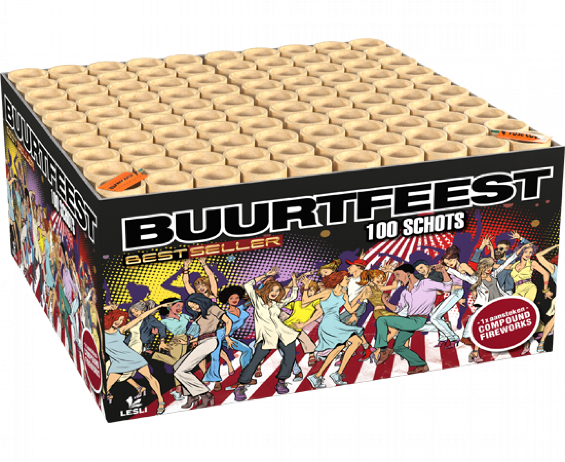 100 schots compound voor een kleine prijs. Cocktaileffecten met veel herrie in snel tempo zorgen voor een spektakel in de straat.
